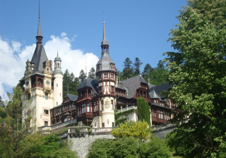 Route vers Bucarest. Visite du château de Peles avec guide francophone. Composé de 160 pièces, c'est un mélange de différents styles avec un festival de boiseries finement sculptées, de vitraux et de marqueterie. Nuit au camping.
