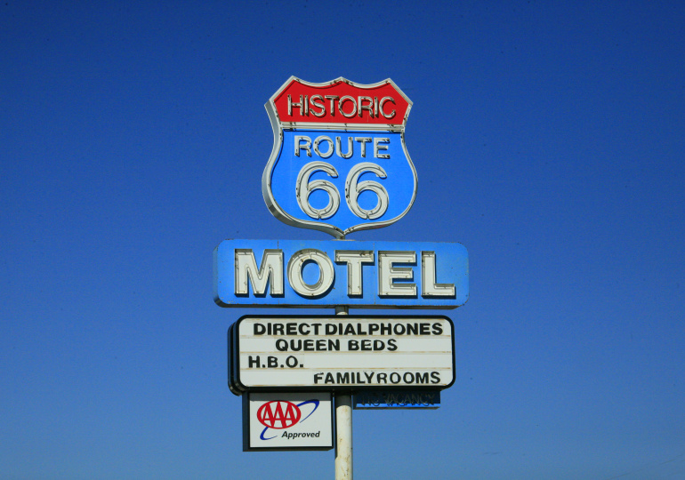 Commencez votre étape par la visite d'un ancien dépôt d'armes reconverti en exposition interactive sur la Route 66. Vous quittez l'Oklahoma pour les grandes plaines du Texas, l’état du pétrole et des véritables cowboys. Sur l’itinéraire, un remarquable musée de la Route 66 présente une belle collection de voitures anciennes et d’objets d’époque. Le soir, transferts pour le dîner organisé au célèbre Big Texan Steak Ranch, avec son décor de saloon, le lieu est réputé pour ses concours de mangeurs des plus gros steaks. Camping.